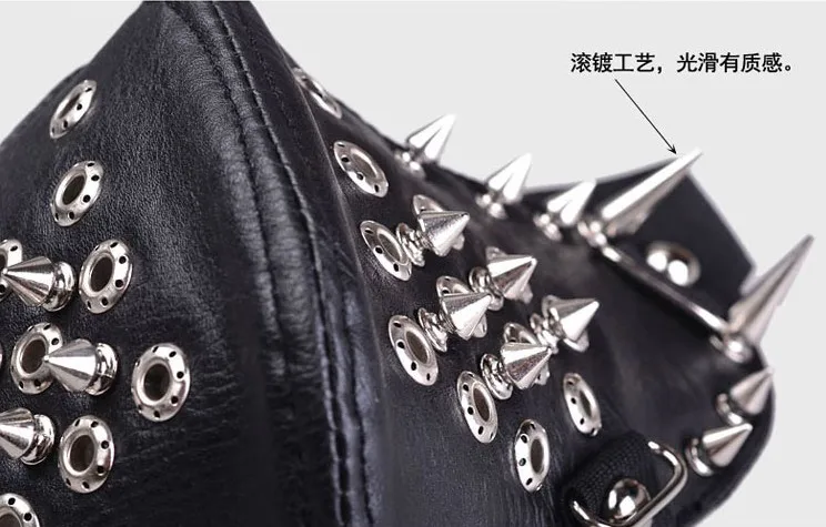 BEST QUALITY Motorcycle Half Face Studded Mask Punk Silver-Metal Spikes Black Leather Mask Hip Hop Punk Motocycl