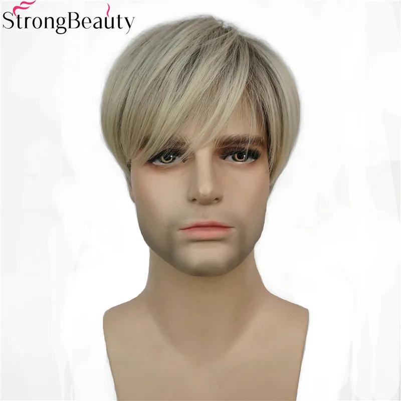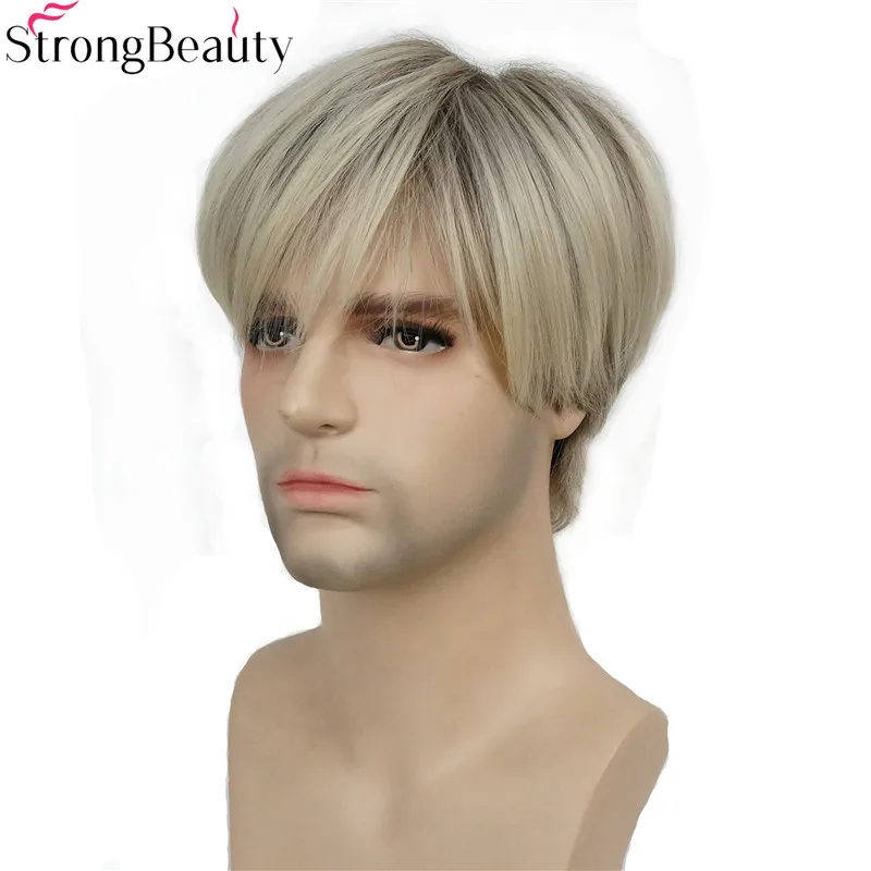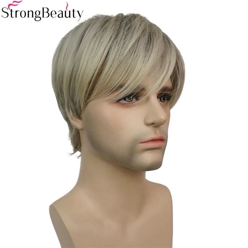 HIGH QUALITY StrongBeauty Short Synthetic Men Wigs Mix Blonde Heat Resistant Capless Wig