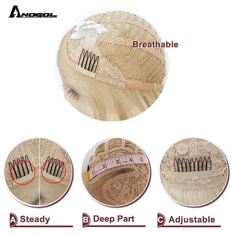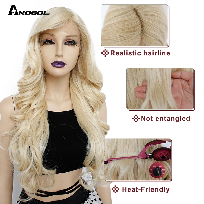 ANOGOL 613 Platinum Blonde Synthetic Lace Front Wig Long Body Wave Wig Heat Resistant Futura Fiber