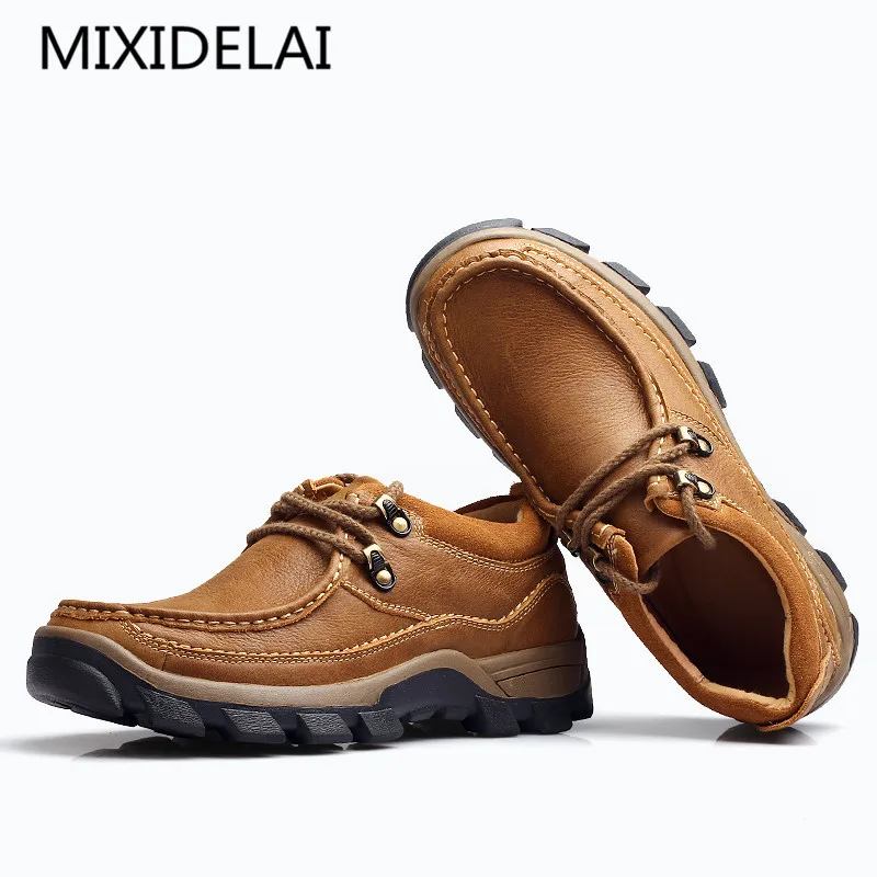 HOT SALE Genuine Leather Men's Shoes 2019 Autumn Winter Casual Waterproof Work Shoes Outdoor Rubber Shoes La