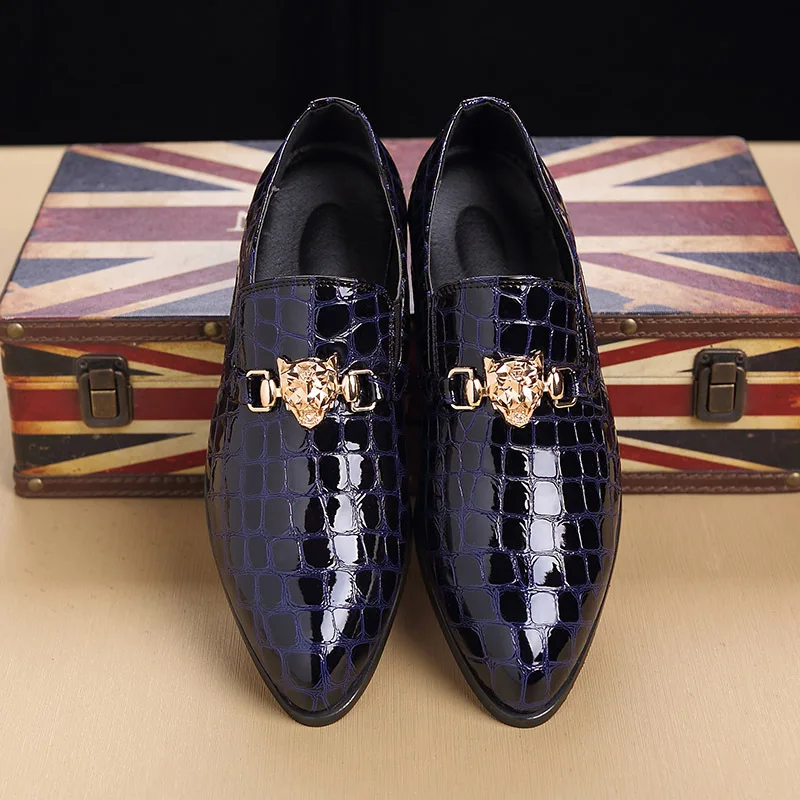 New Luxury Crocodile Grain Slip-On Oxfords Shoes Men Casual Fashion Pointed Toe Dress Shoes New Des