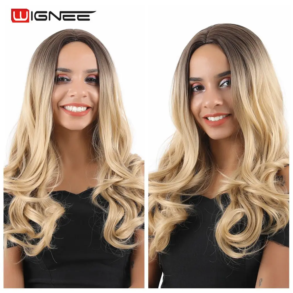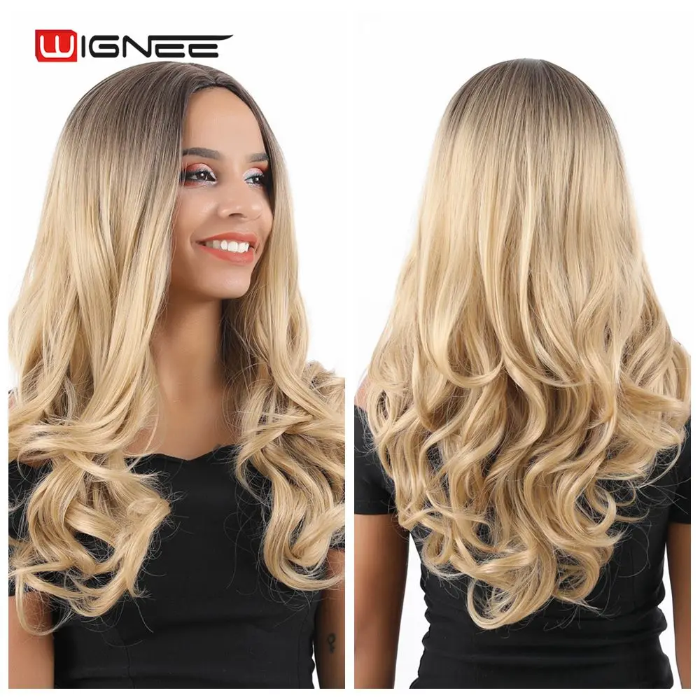 BEST SELLER Wignee Middle Part Ombre Blonde Long Wavy Hair Synthetic Wig For Black/White Women Natural Heat Res