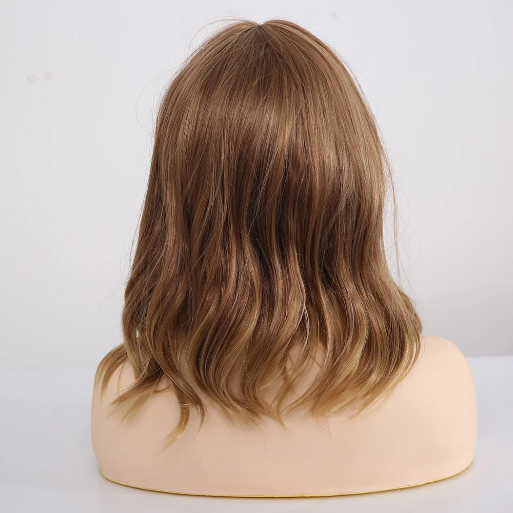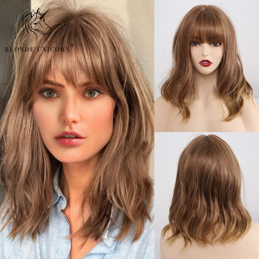 ORIGINAL Blonde Unicorn 14 Inch Synthetic Short Curly BoB Wigs with Bangs Milk Tea Ombre Color Natural Hair