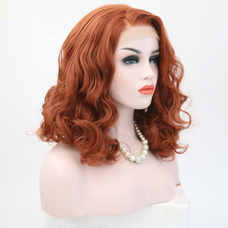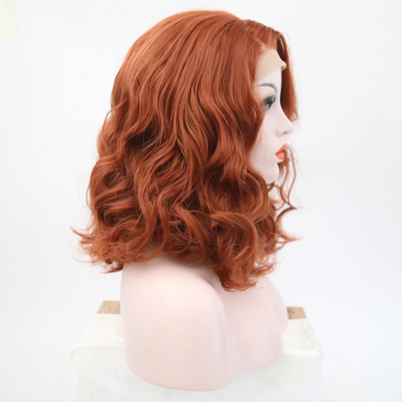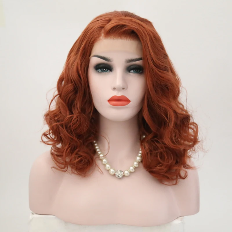 HOT SALE Charisma Short Wig Wavy Hair Side Part Synthetic Lace Front Wig Orange Red Color Glueless Heat Resi
