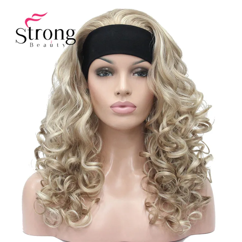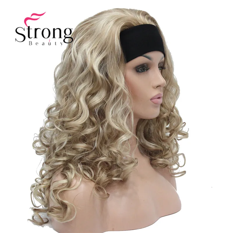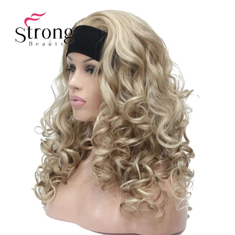 StrongBeauty Long Blonde Highlights Curly Heat Ok Synthetic HEADBAND Wig