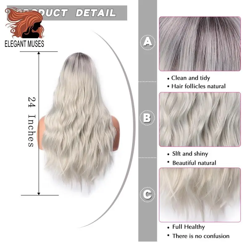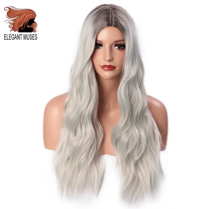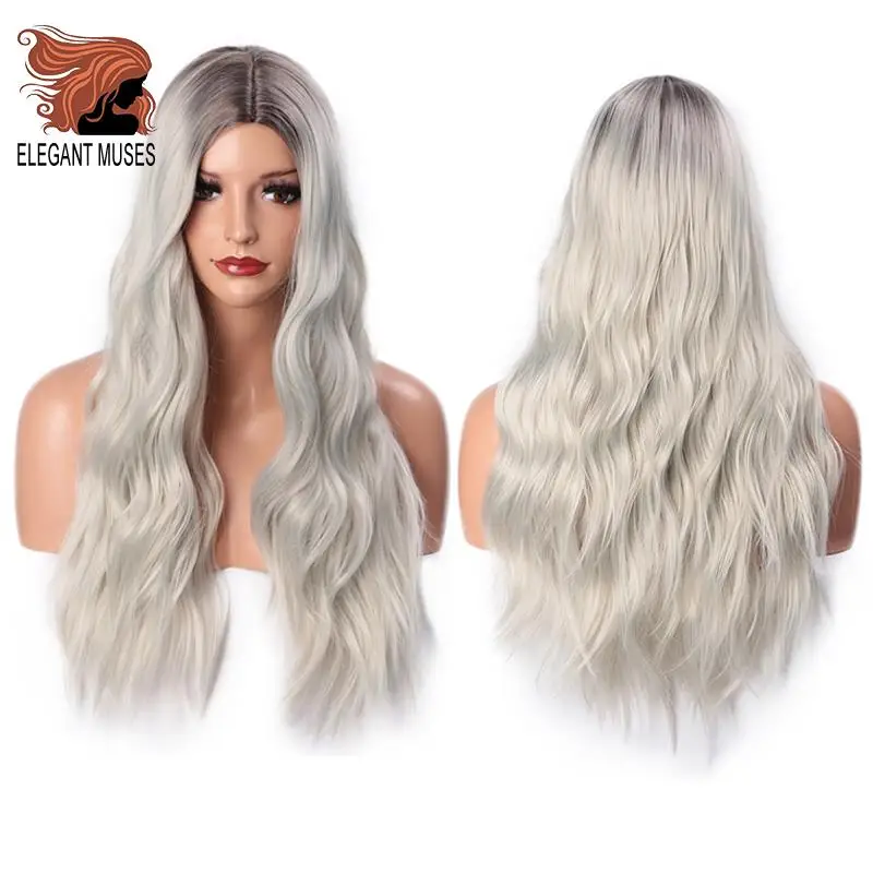REVIEW TOP SELLER ELEGANT MUSES Long Wavy Platinum Blonde Wig Ombre Blonde Synthetic Wigs for Women 24 Inches Two Ton