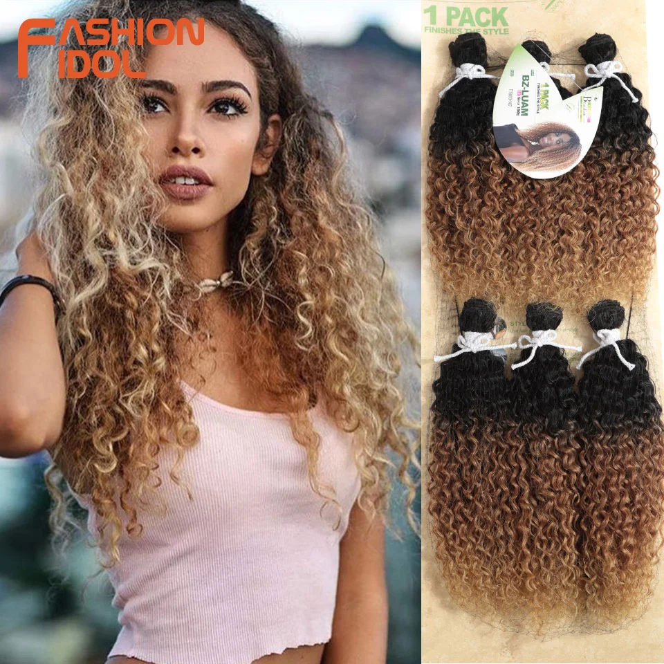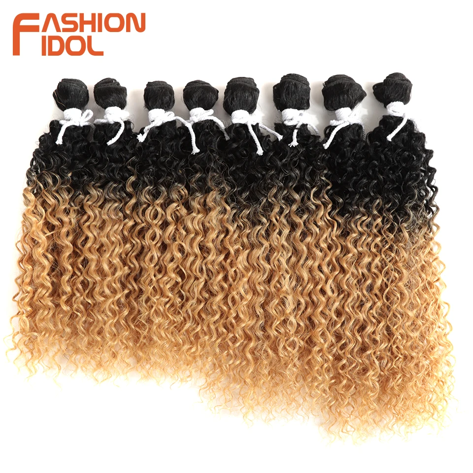 ORIGINAL FASHION IDOL Afro Kinky Curly Hair Bundles Weave 16-20inch Ombre Brown Heat Resistant Synthetic Hai