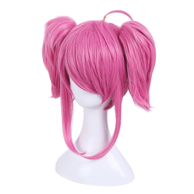 L-email wig LOL Star Guardian Lux Cosplay Wig Pink Double Ponytails Cosplay Wigs Short Hair Wig Hea