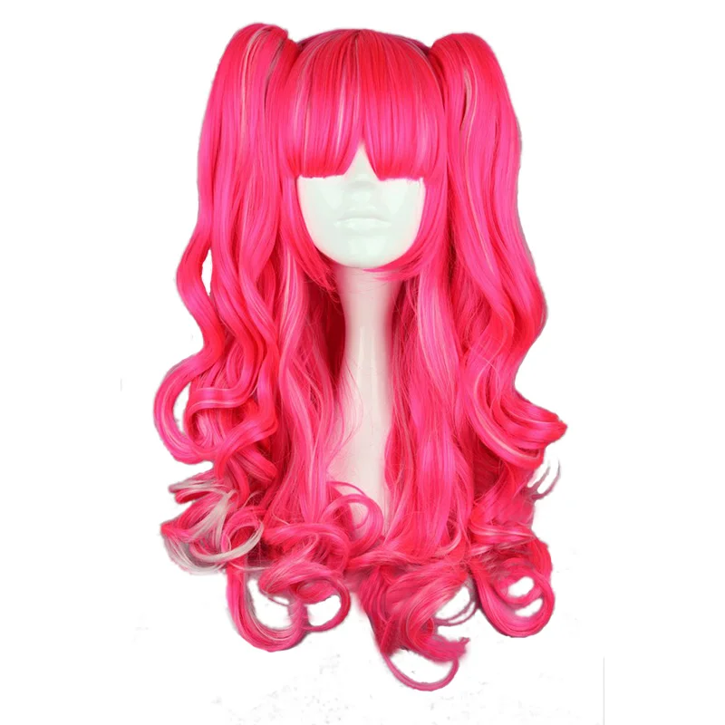 MCOSER Long Wavy Synthetic Light Pink /black/grey/brown Multi-Color 2 clips Cosplay Wigs 100% High