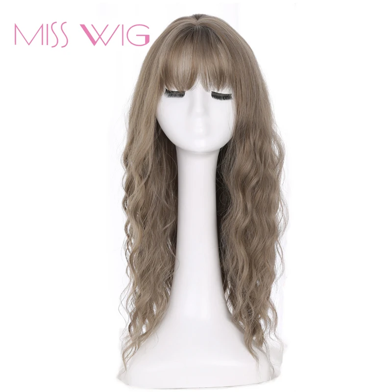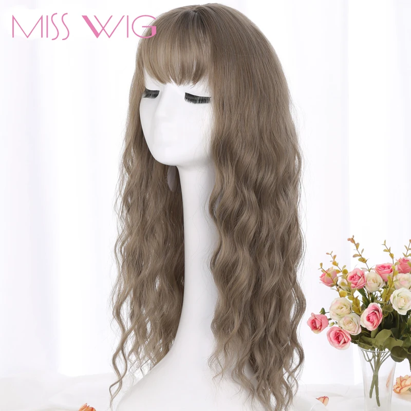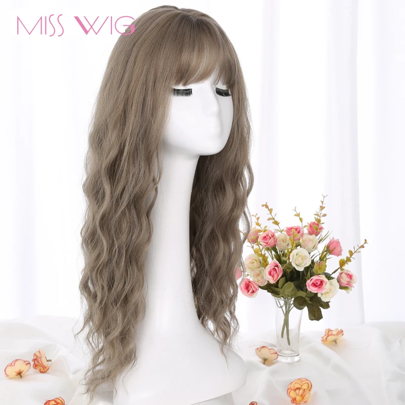 HOT SALE MISS WIG Long Grey Brown Womens Wigs with Bangs Heat Resistant Synthetic Wavy Wigs for Black Women