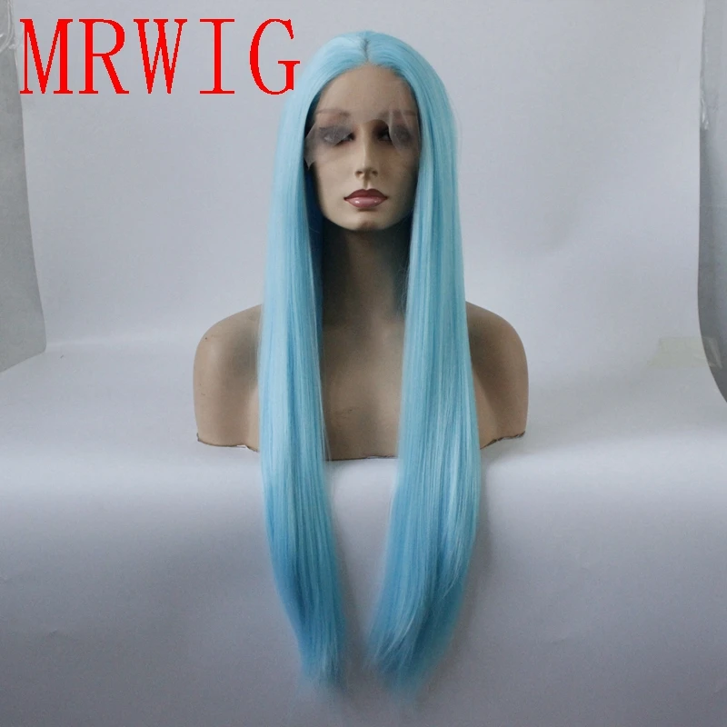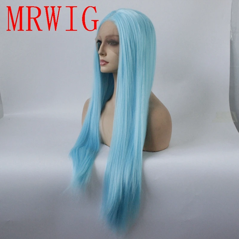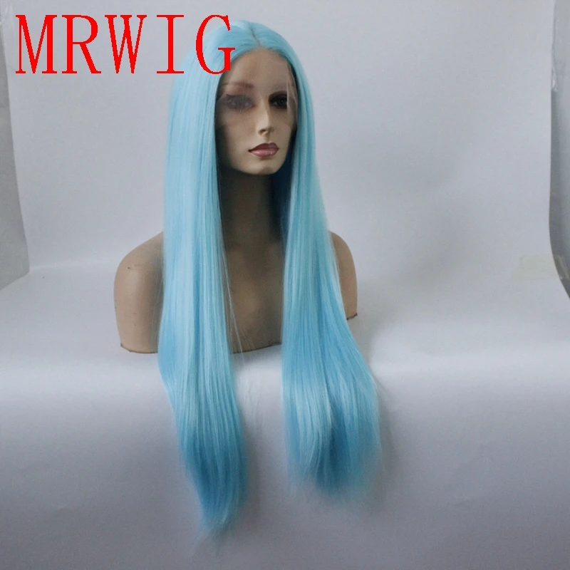 Best Seller MRWIG Straight Synthetic Lace Front Wig Long Light Blue Hair Heat Resistant Middle Part 150%