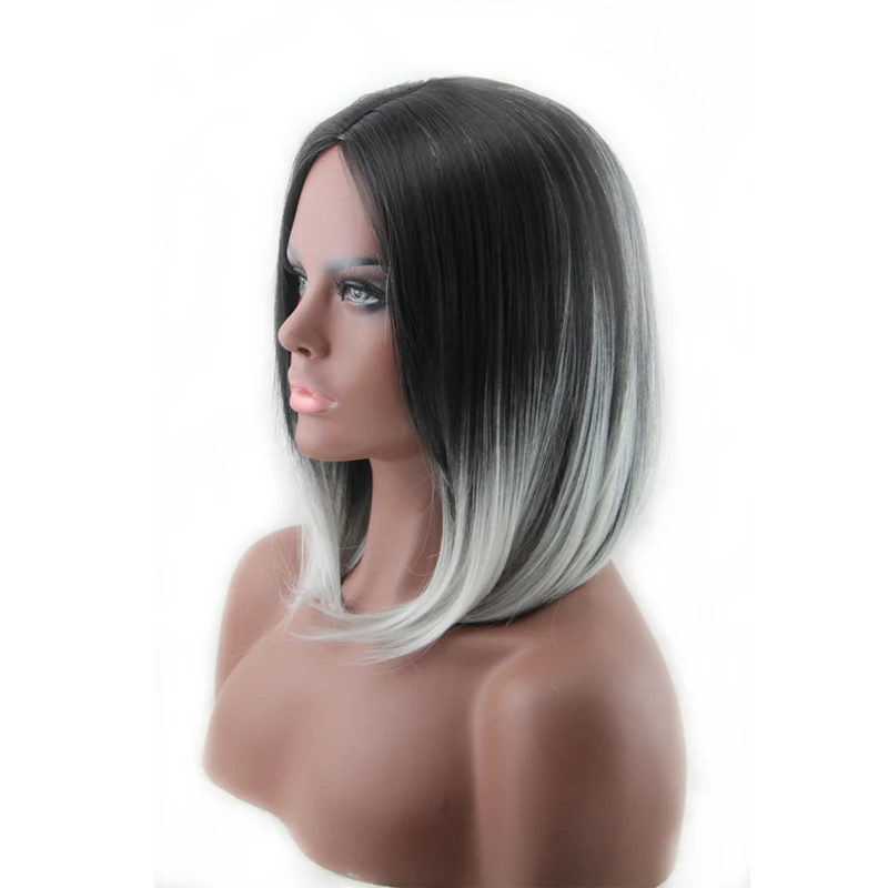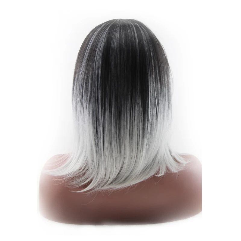 QQXCAIW Women Medium Long Cosplay Party Black To Grey Ombre 45 Cm Synthetic Hair Wigs