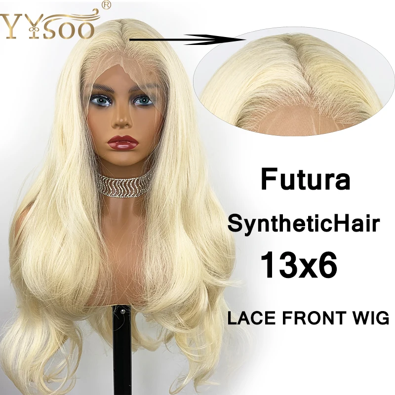 REVIEW TOP SELLER YYsoo Long 13X6 Body Wave Synthetic Lace Front Wigs for Women Blonde Lace Frontal Japanese Futura F