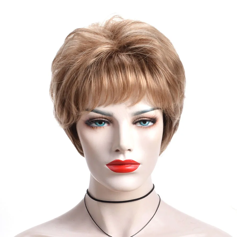 Alizing Short Gold Brown Wig Natural Wave Curl Style Daily Lady Wig Classic Cap Office Lady Cute Sh