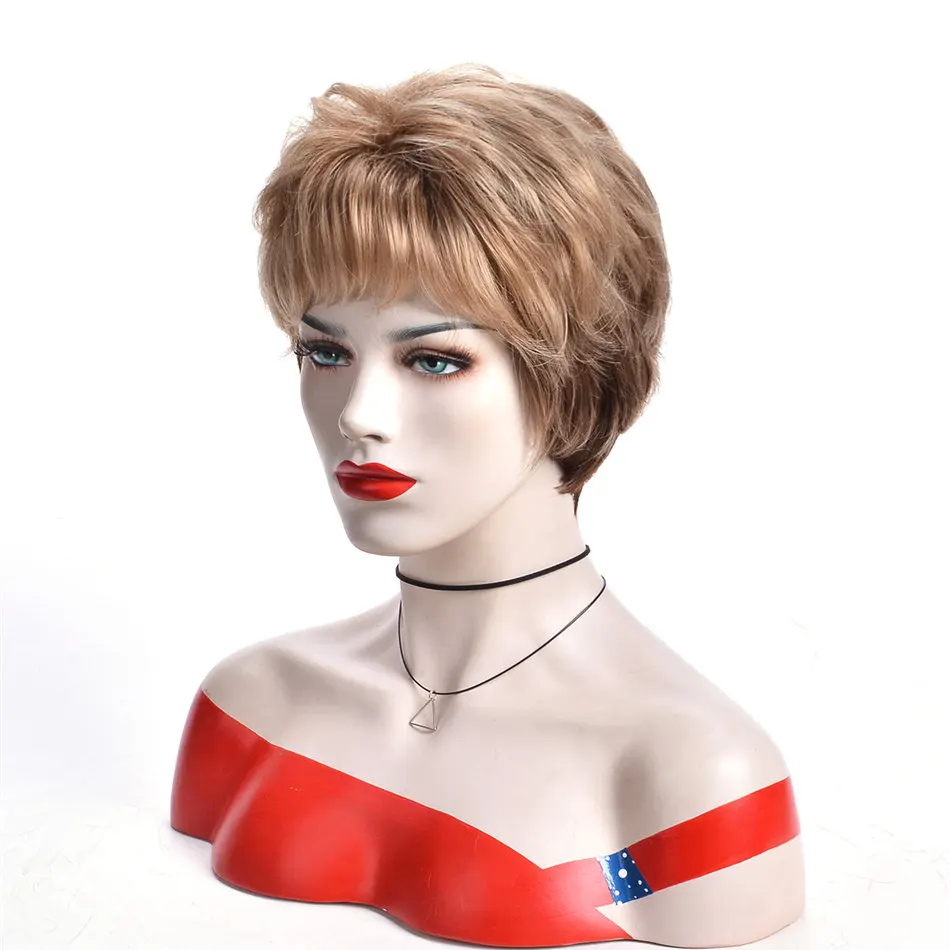 Best Seller Alizing Short Gold Brown Wig Natural Wave Curl Style Daily Lady Wig Classic Cap Office Lady Cute Sh