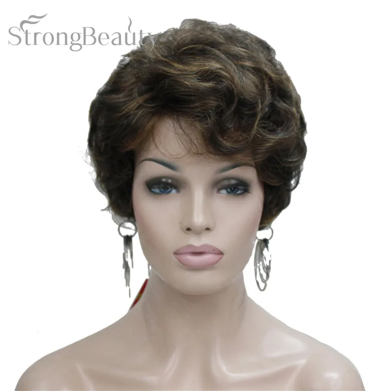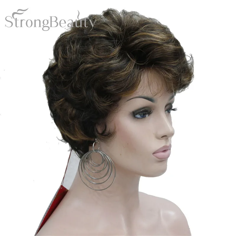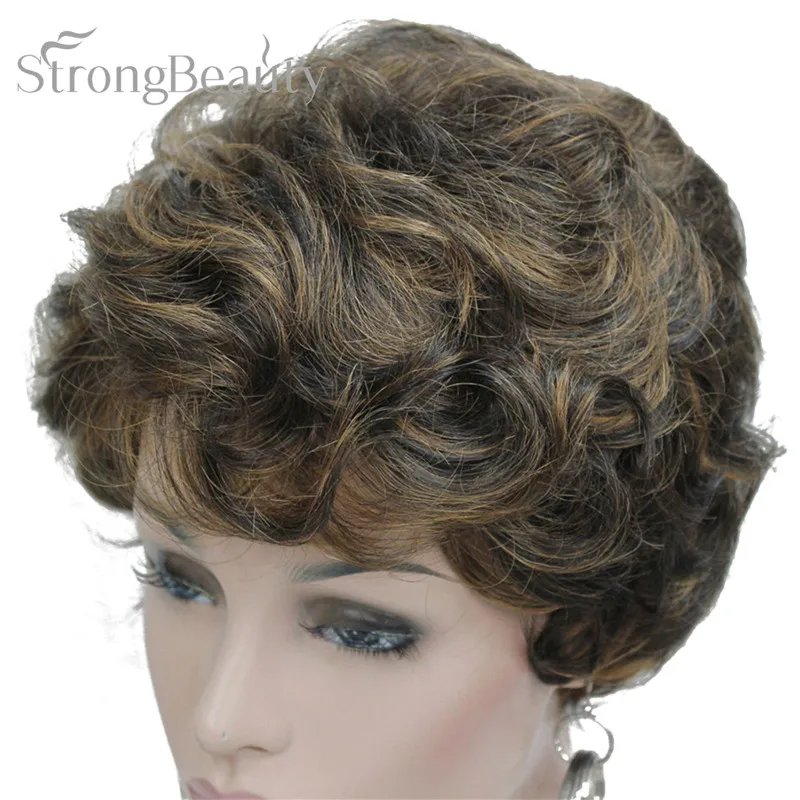 Hot Sale StrongBeauty Short Black Brown Mix Blonde Highlights Wigs Women Synthetic Curly Wigs
