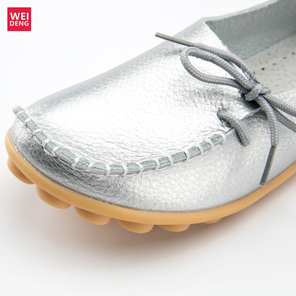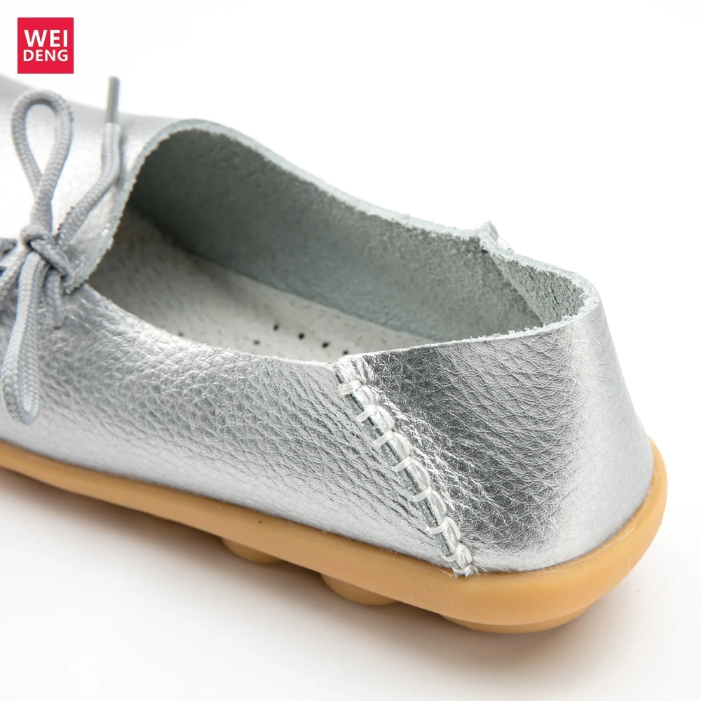 Best Seller WeiDeng Women Genuine Leather Flat Moccasin Loafer Casual Ladies Slip On Cow Driving Fashion Ballet