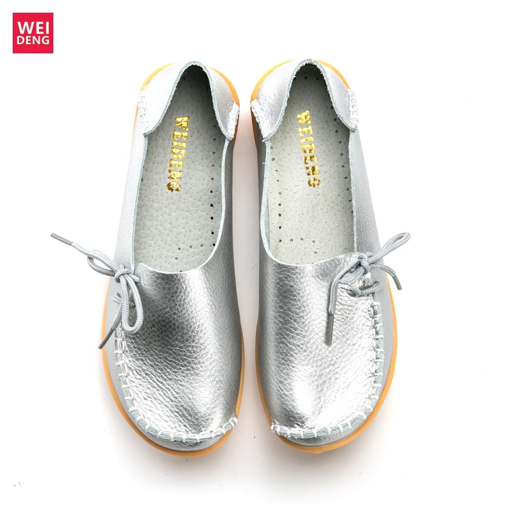 WeiDeng Women Genuine Leather Flat Moccasin Loafer Casual Ladies Slip On Cow Driving Fashion Ballet