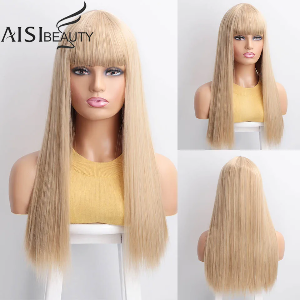 ORIGINAL Aisibeauty Long Synthetic Wig with Bangs 26''4Colors High Density Natural Headline Heat Resistant S