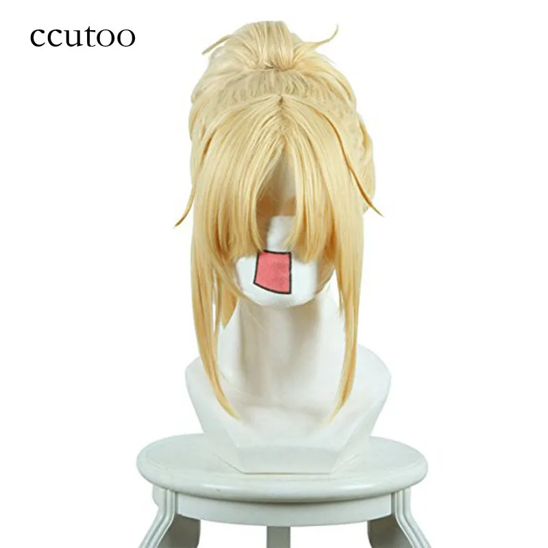 BEST ccutoo 40cm Blonde Short Straight Synthetic Wig With Chip Ponytail Heat Resistance Cosplay Wig Fate
