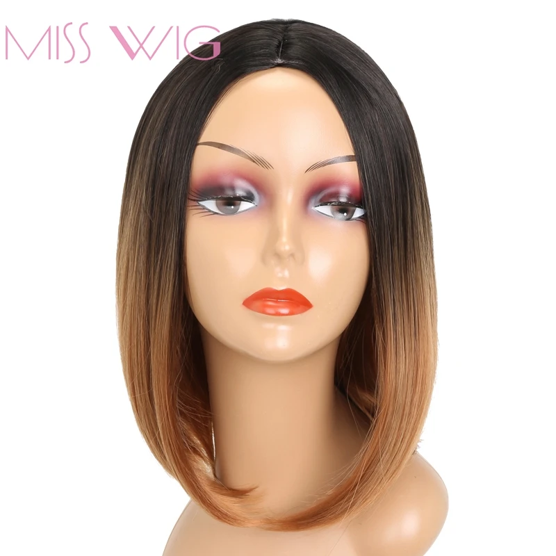 BEST QUALITY MISS WIG Black Ombre Brown Short Straight Wig For Women Synthetic Hair Bob Hairstyle 200g