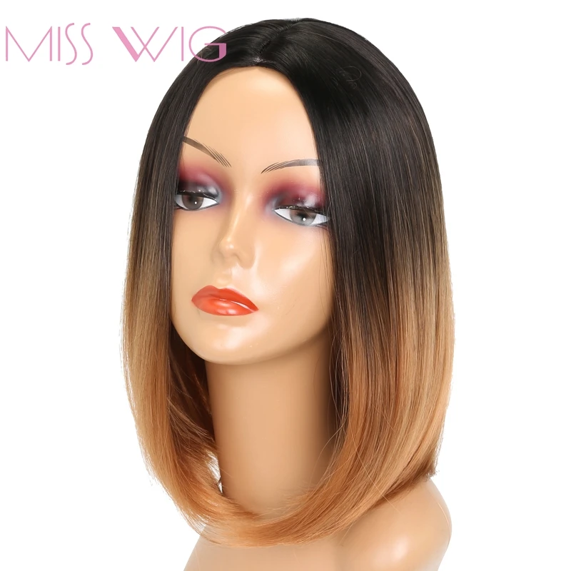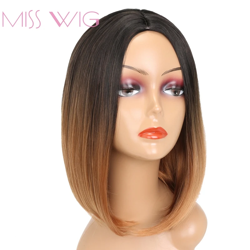 MISS WIG Black Ombre Brown Short Straight Wig For Women Synthetic Hair Bob Hairstyle 200g