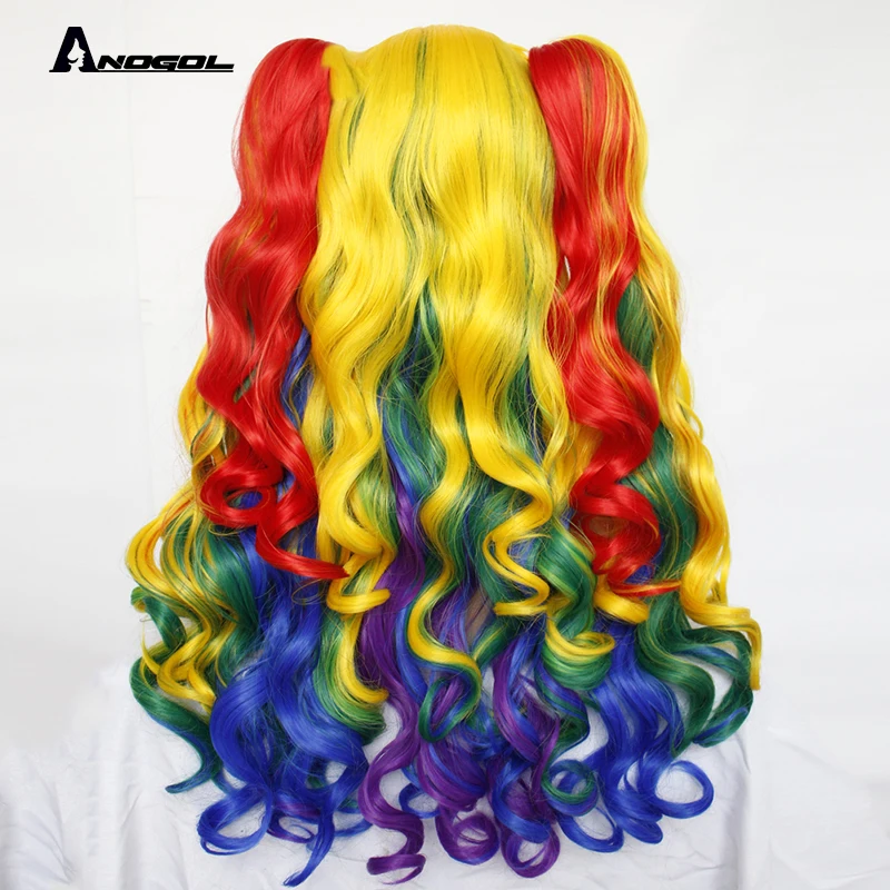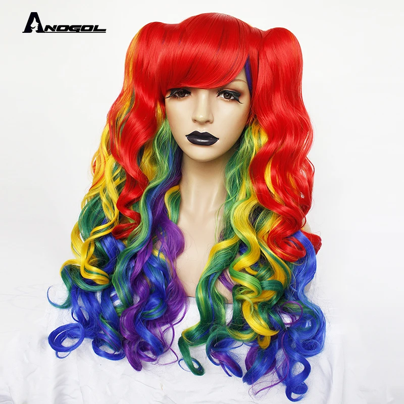 ANOGOL Lolita Rainbow Wig High temperature fiber Pigtail 6ix9ine My Little Pony Synthetic Cosplay W
