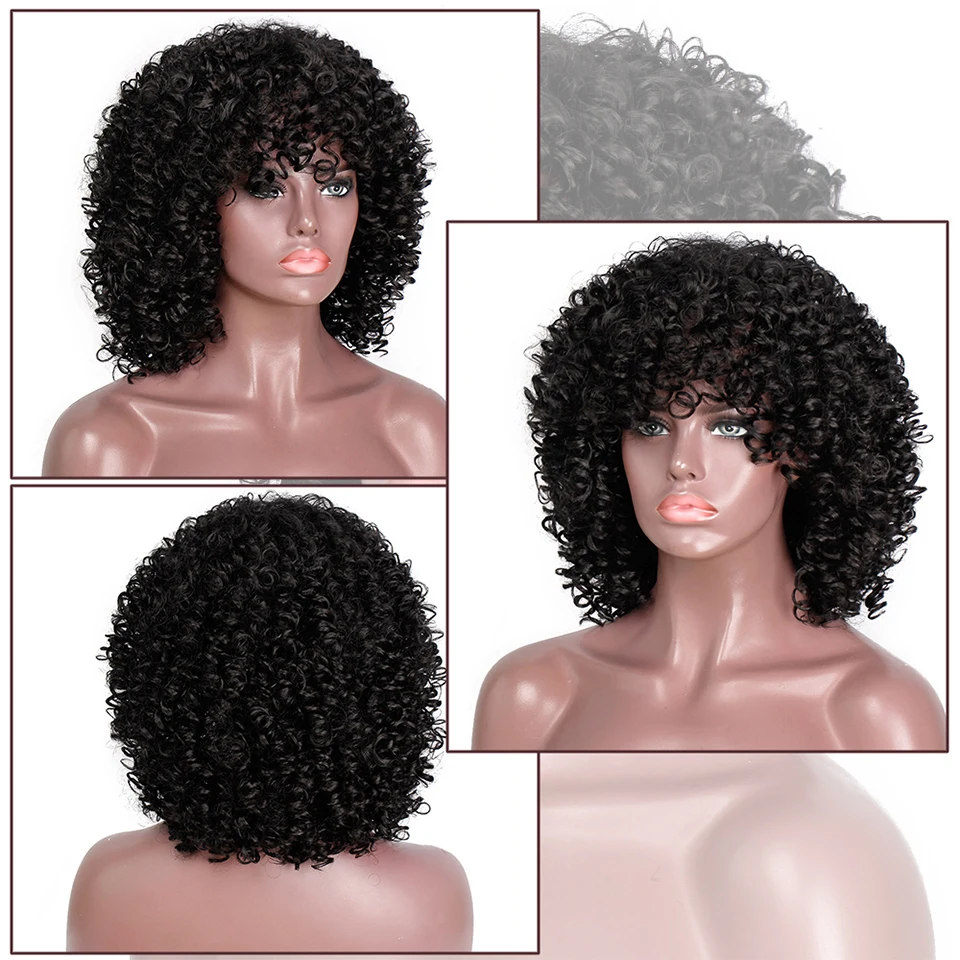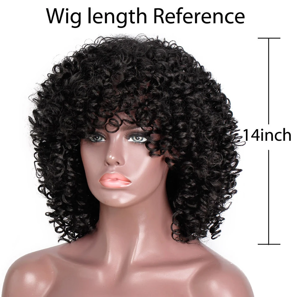 Hot Sale Stamped GloriousCurly Afro Wig with Bangs Shoulder Length Black Kinkys Curly Hair Synthetic Heat Re