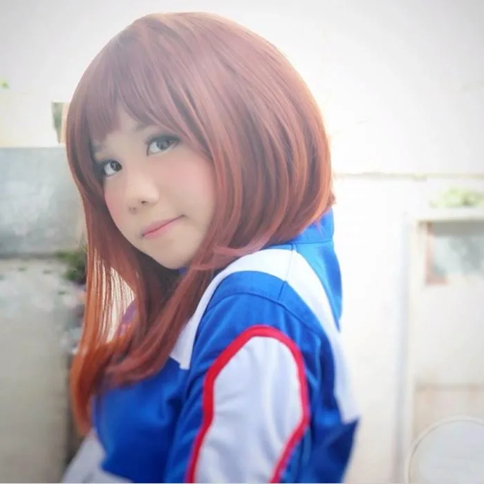 BEST SELLER Anime My Hero Academia Ochako Uraraka Short Brown Bob Heat Resistant Cosplay Costume Wig + Wig Cap+