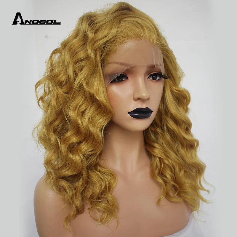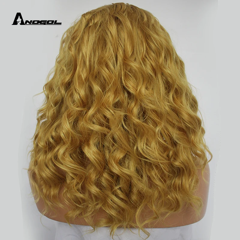 Review Anogol Gold Blonde High Temperature Fiber 360 Frontal Long Deep Wave Full Hair Wigs Synthetic Lace