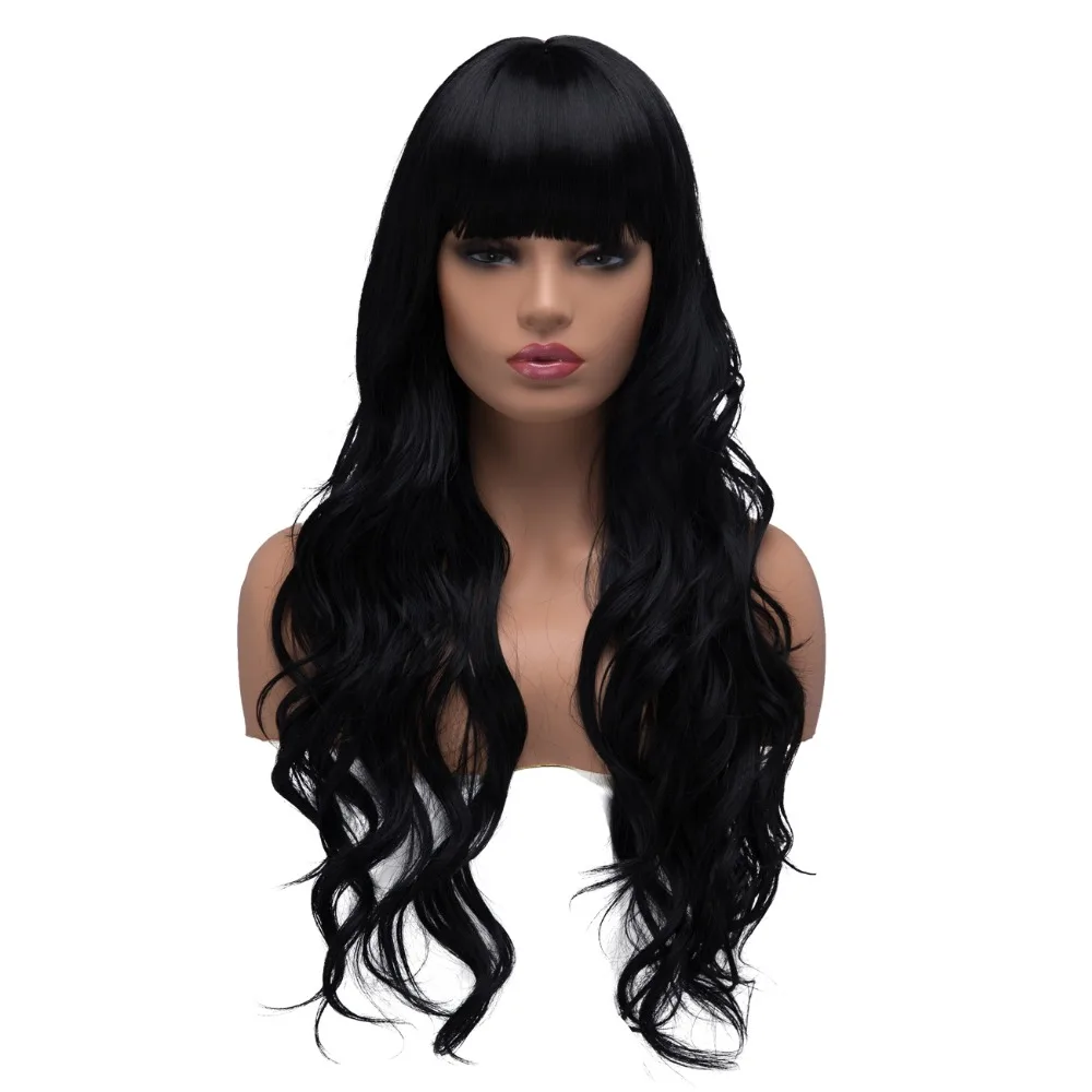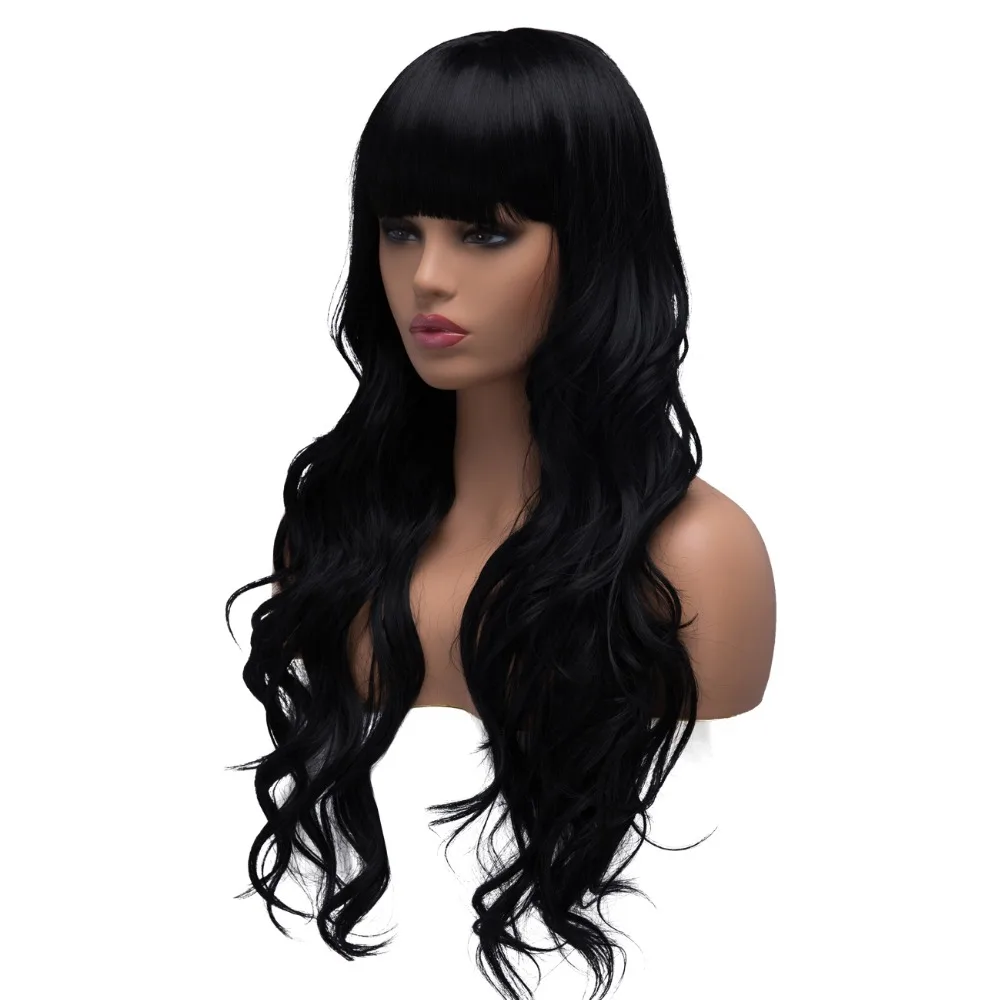 ORIGINAL BESTUNG Long Curly Wavy Cosplay Wigs for Women Ladies Synthetic Full Hair Natural Black Brunette Wi