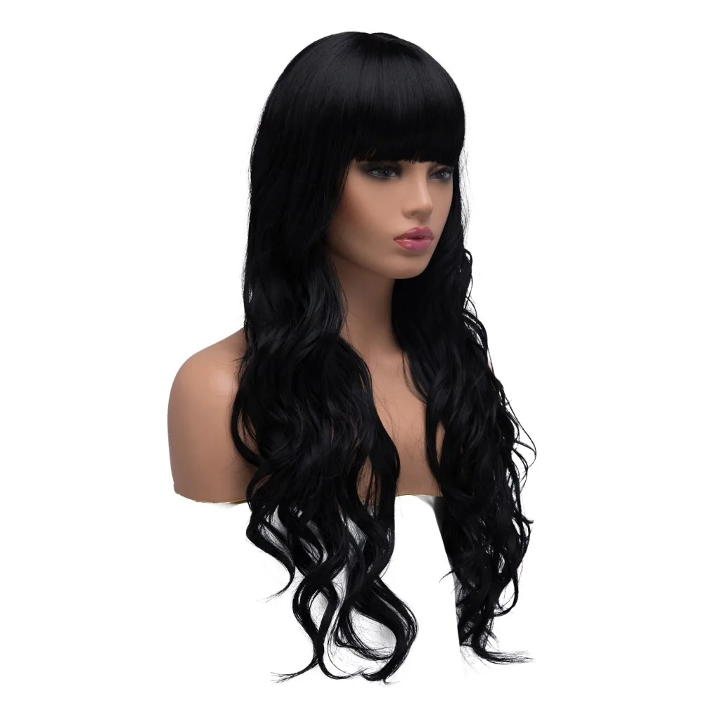 BESTUNG Long Curly Wavy Cosplay Wigs for Women Ladies Synthetic Full Hair Natural Black Brunette Wi