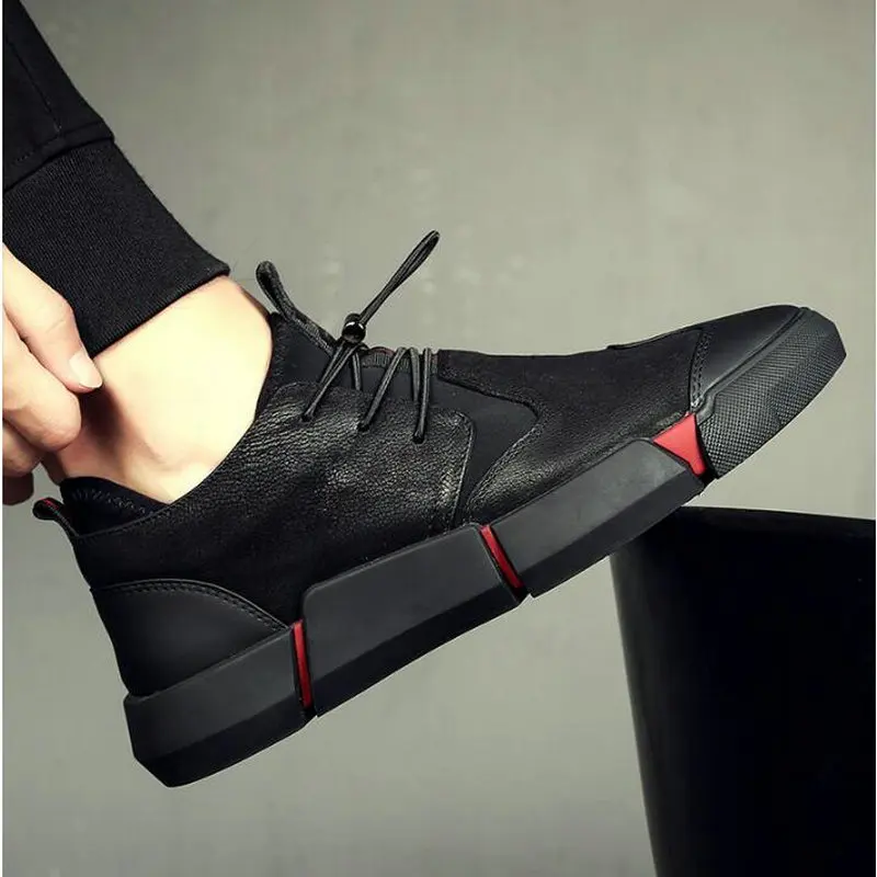 New Fashion Brand winter keep warm with plush fur Black Mens Casual Leather Lace Up sneaker Formal