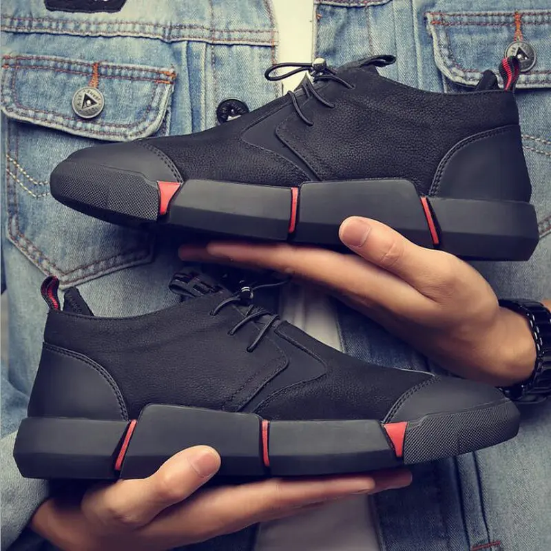 Review New Fashion Brand winter keep warm with plush fur Black Mens Casual Leather Lace Up sneaker Formal